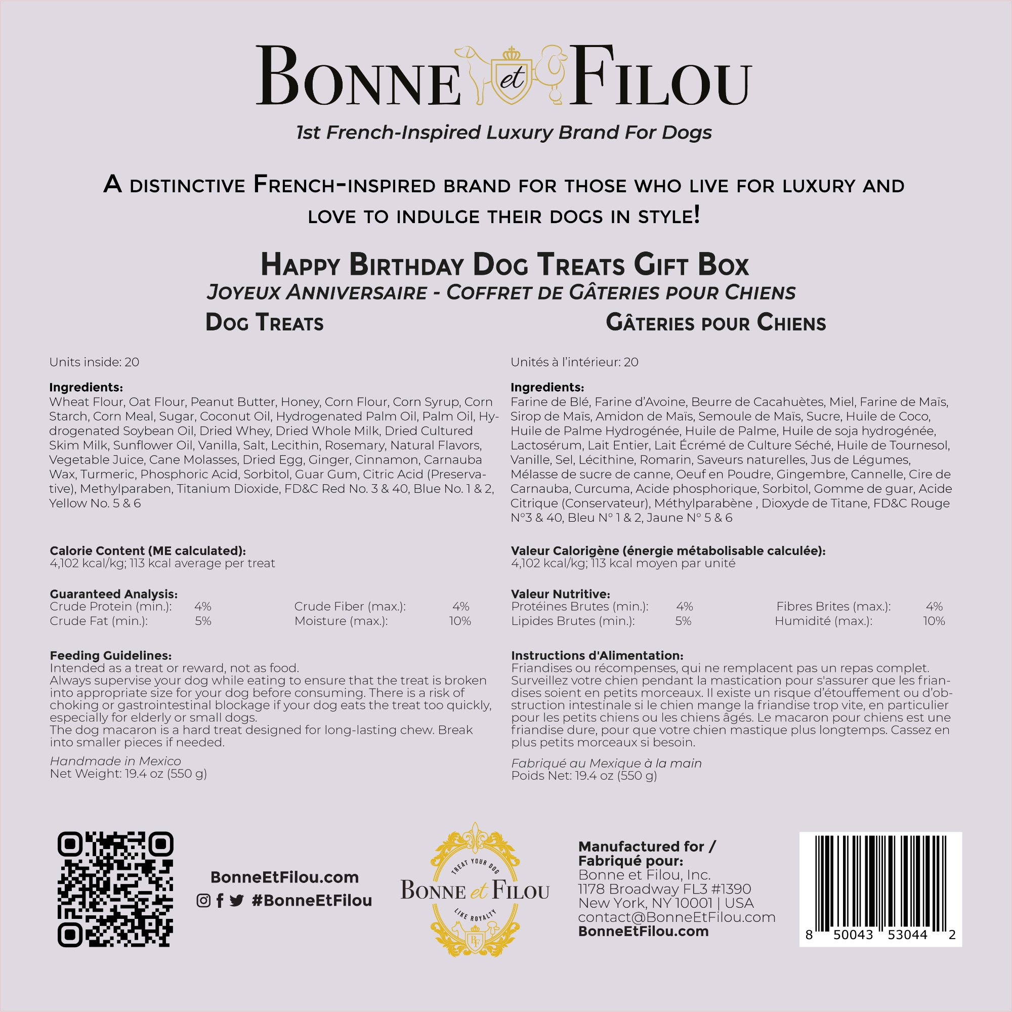 With the Happy Birthday Dog Treats Gift Box, your dog will know you love them the best, and you’ll feel great knowing you’re treating them like Royalty with high-quality, delicious treats made with love by Bonne et Filou.